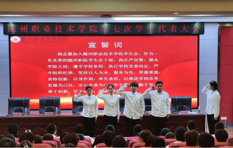 9月29日,随州职业技术学院第七次学生代表大会在学术报告厅召开。学校党委委员、副校长邹厚亏,共青团随州市委副书记(挂职)、校团委副书记孙红霞出席大会。党委宣传部、党委组织部、党委学生工作部、团委等部门负责人,各二级学院党总支副书记、学工办主任、团总支书记,第六届学生会在校成员、第七届学生会候选人以及166名学生代表参加会议。